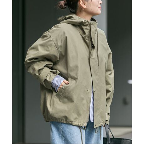 滑らかな素材でカジュアルになりすぎないモッズブルゾン。