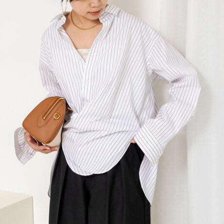 ・ゆったりした身幅と、深めの脇スリットが、着るだけで自然な抜け感の出るアイテム