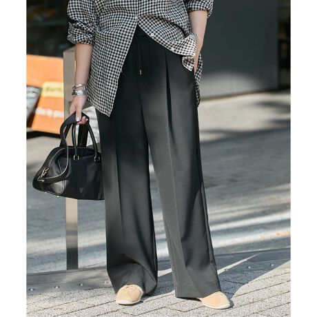 スーツ地のようなキレイ見えなのに、ジャージー的なリラックス感あふれるイージーパンツ。