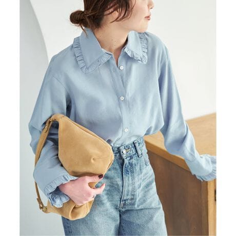 シャツベースのデザインで甘さを抑えつつ、クリーンに着られる大人バランスが魅力。