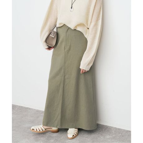 やわらかなフェード感が大人カジュアルな印象を与える、ウォッシュドツイル素材のナロースカート。