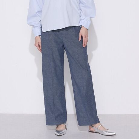 前はきちんと感を出したベルト仕様で、後ろはウエストゴム仕様にしエフォートレスな着心地です。