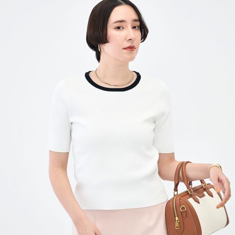 ・ホワイト(10)は黒、ベージュ(62)はエクリュの襟配色がポイント