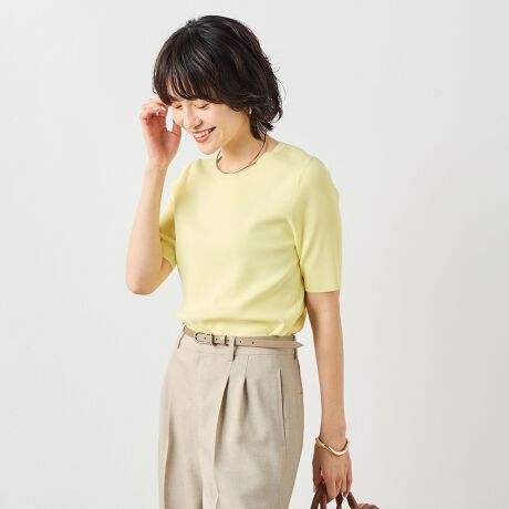 ・安心感のある総針組織の5分袖ニットプルオーバー
