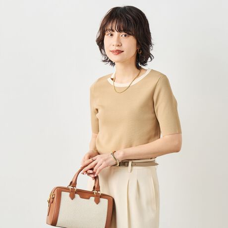 ・安心感のある総針組織の5分袖ニットプルオーバー