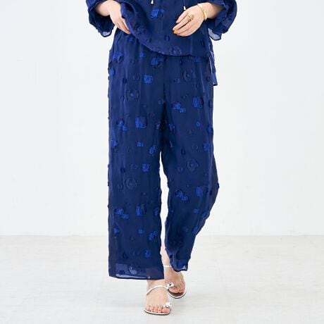 ・日本のジャガードの産地、桐生産のカットジャガードを使用した特別感のあるパンツ