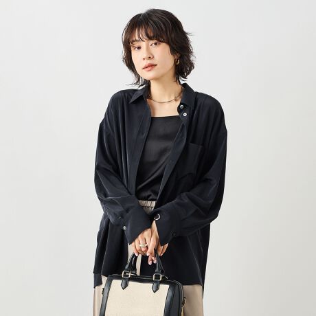 ・トリアセテートとポリエステルのしなやかでマイルドな風合いのとろみシャツ