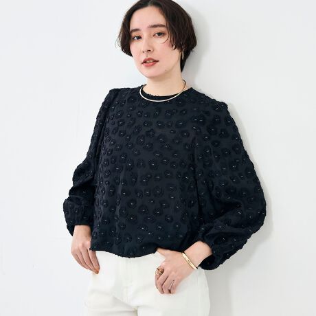 ・日本のジャガードの産地、桐生産のカットジャガードを使用した特別感のあるブラウス