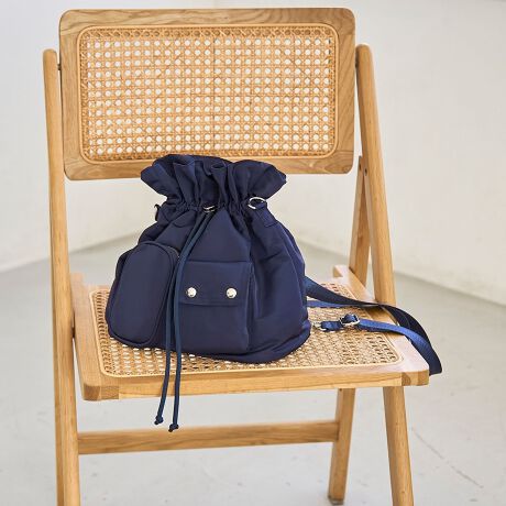 口元はドローストリング仕様で、サイドにはジップを配置。