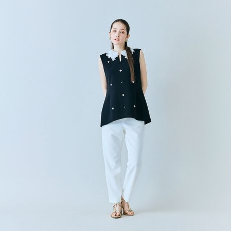 ・フロント部分にビジューやパールが散りばめられた存在感のある甘々なフェミニンブラウス。