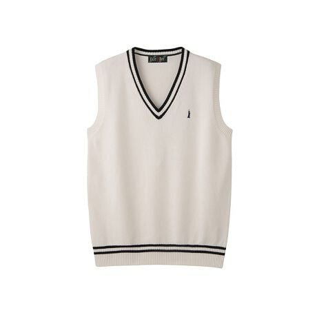 シンプルな配色で合わせやすく、スッキリして見えるメンズライン入りベスト。ハイツイストドライタッチコットンを使用しており、強く撚りをかけた繊維の長い糸で目を細かく編むことにより、型崩れしにくく、光沢のあるきれいな表面のニットに仕上げました。丈夫でサラッとした心地良い肌触りです。左胸に女神刺繍入り。