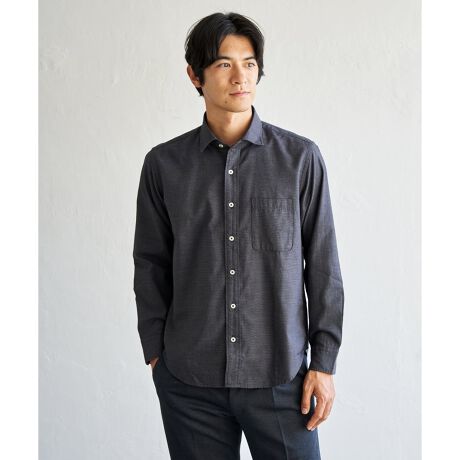 デニムのような風合いを持ちながら、軽やかで上品に着られるデニムライク素材のスイスカラーシャツ。