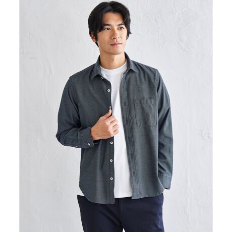 デニムのような風合いを持ちながら、軽やかで上品に着られるデニムライク素材のスイスカラーシャツ。