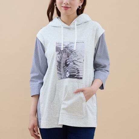 【一枚で着映える、遊び心】シャツ切り替え・フォトプリントパーカー