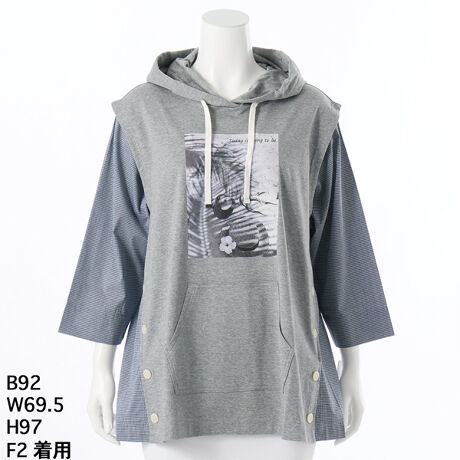 【一枚で着映える、遊び心】シャツ切り替え・フォトプリントパーカー