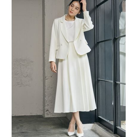 きちんと感があり、大人っぽく着られるジャケットとスカートのセットアップ。