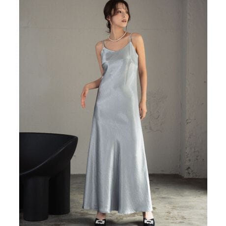 サテン キャミソールワンピース フレア ロング丈 結婚式 ワンピース パーティードレス