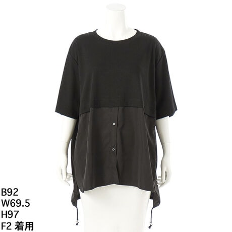 カットソー綿100と裾ブラウス生地はポリエステル100の切り替えカットブラウス
