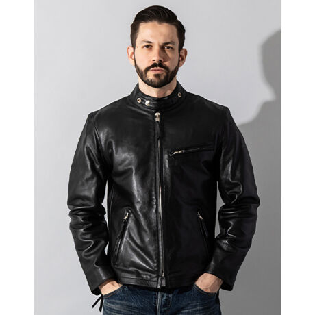 Liugoo Leathers 本革 立襟シングルライダースジャケット メンズ SRS01CWA