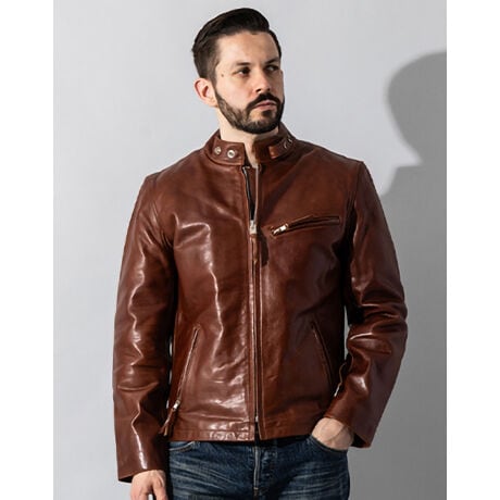 Liugoo Leathers 本革 立襟シングルライダースジャケット メンズ SRS01CWA