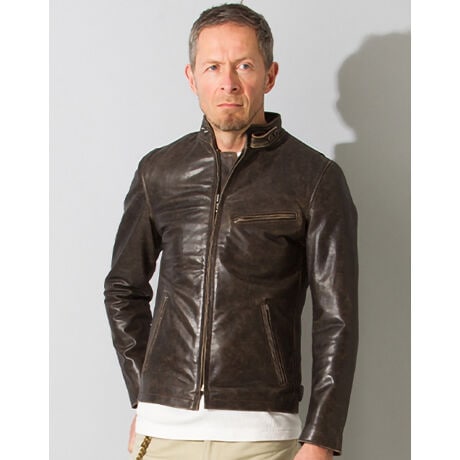 Liugoo Leathers 本革 立襟シングルライダースジャケット メンズ SRS01CWA