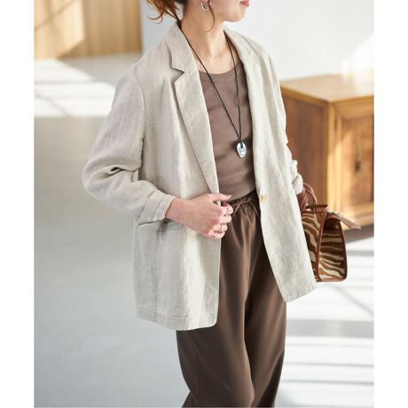 さらっと羽織るだけで、春コーデが軽く整うエアリーリネン1Bジャケット。