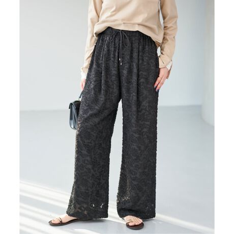 表面に立体感のあるシアージャガード素材を使用した、印象的なイージーパンツ。