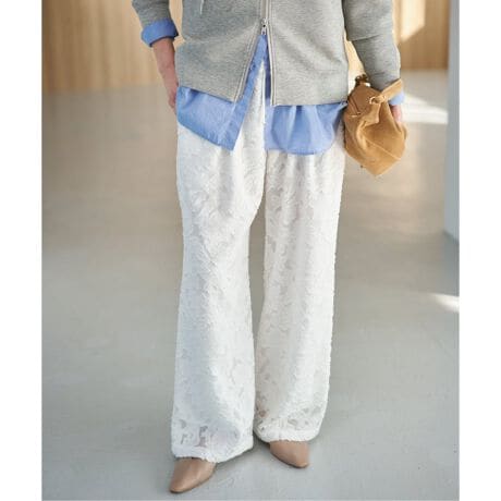 表面に立体感のあるシアージャガード素材を使用した、印象的なイージーパンツ。