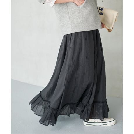繊細な表情で、大人のスタイリングにやさしい華やぎをプラスするエンブロイダリースカート。