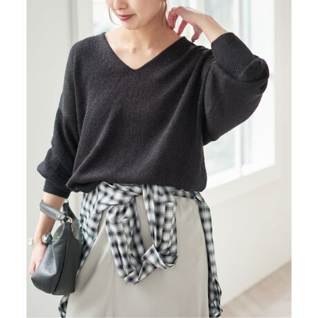 前後で深さを変えたVネックは、デコルテを美しく見せながら、程よい抜け感を演出します。