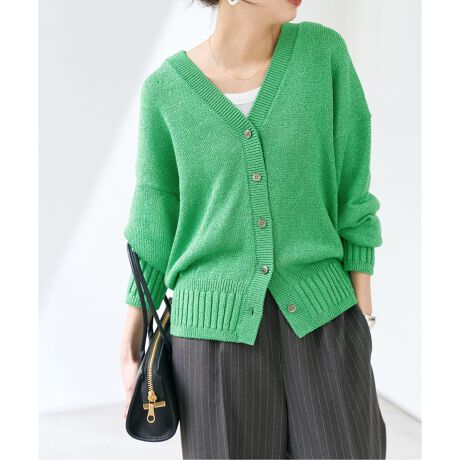 軽やかな素材感で、大人の装いに上品な抜け感をプラスするVネックカーディガン。