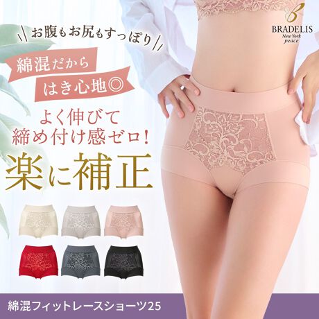 おへそが隠れるぐらいのはきこみ丈で、ウエストからヒップ下まで包み込む一分丈補正ショーツ。