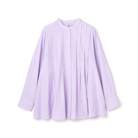 ■デザインすっきりとしたバンドカラーに、太めのピンタックが映えるブラウス。裾に向かってふんわりと広がるシルエットが、体のラインを拾いすぎずリラックス感のある着心地を叶えます。ヒップまでしっかり隠れるやや長めの丈も嬉しいポイント。体型をカバーしつつ、バランスよく着こなせるアイテムです。袖口のカフスはボタンでサイズ調整が可能なため、お好みに合わせて着用いただけます。