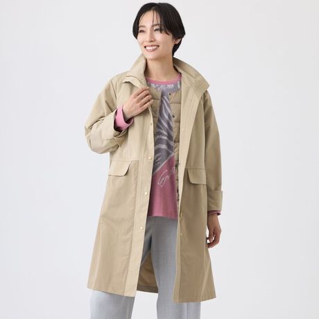 3シーズン活躍する、ダウンライナー付のウィングカラーコート。シャープに襟を立たせるとスタイリッシュに、襟を折るとステンカラー風の上品な印象で着用いただけます。ライナーにはTAIONのダウンベストをドッキング。優れた嵩高性のダウンを使用しているので軽くてあたたかく、インナーダウンとしてはもちろん、単品でも着用できる実用的な一枚です。