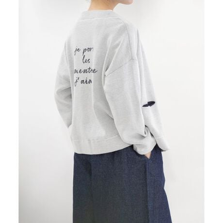 春にちょうどいい、スエット風のカーディガン。表側も裏側もコットンで編み立てたダブルニット仕立てで、軽さがありながらもしっかりとした裏毛スエットのような風合いが特徴です。衿はダブル付けのハイネック風で、すっきりと留まるドットボタン仕様。配色のポケット袋布がさりげないアクセントになり、背中にはロゴのインターシャ入りで後ろ姿までぬかりのないデザインです。