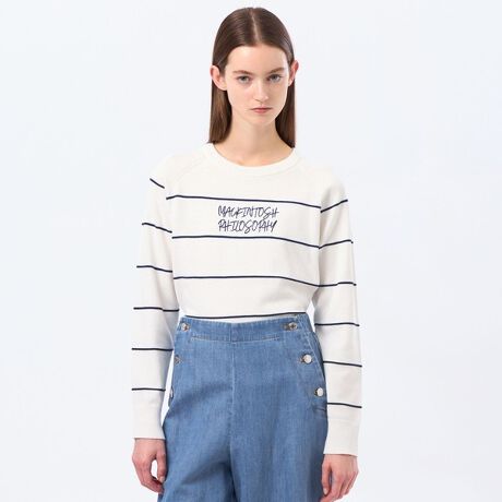手書き風のブランドロゴをチェーンステッチ刺しゅうで表現したニットプルオーバーです。カジュアルなアイテムながら、ほどよい肉感とハリのある編素材で、クリーンな印象に仕上げました。