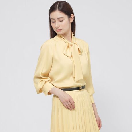 華やかな印象を放つボウタイブラウスです。