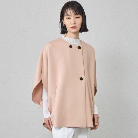 ポンチョのような丸いシルエットが目をひく、ジャージー素材のジャケットです。