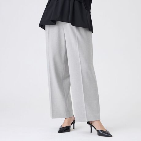 タックを入れることで程よいデザイン性を持たせたスラックスパンツ。センタークリーズですっきりとした印象に仕上げました。程よくゆとりがありながら、まっすぐ落ちるシルエットで美脚効果のあるパンツです。ストレッチ性のある素材を採用することで、きちんと感と快適な履き心地を両立させました。