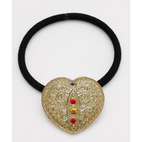[型番:LAGZ6607-2026]丸みのあるハート型のチェコボタンが印象的なヘアゴム。アンティーク風のモチーフと手軽さも魅力。旅先のお土産のような特別感。