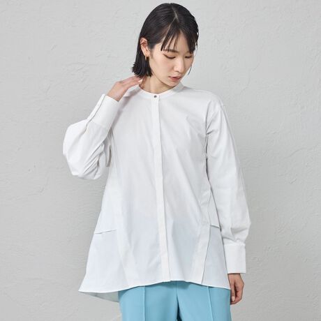 他にはないデザインと、一枚でこなれた印象を引き立てるブラウス。