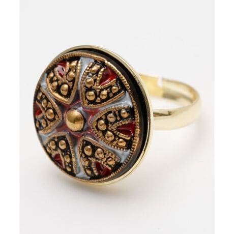 [型番:LAGZ6601-2026]ガラスの輝きが美しく、アンティーク感あふれる指輪。繊細な彫刻模様が手元を彩り、旅先で出会った一点物のような特別感に。