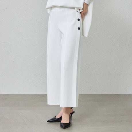 セミワイドシルエットのニットパンツ。