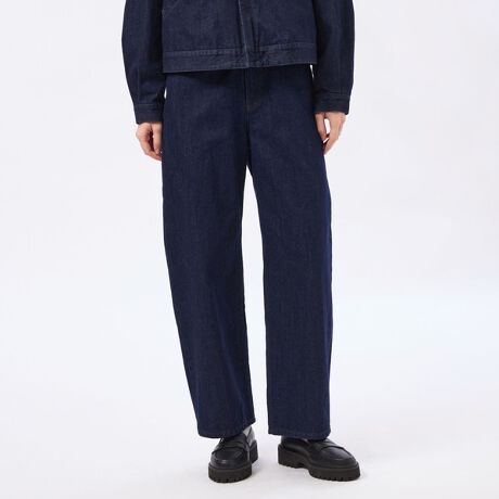 経糸にややムラのある糸を使用した10.6オンスのデニム素材です。深いネイビーのインディゴカラーが特徴のデニム。キレイ目な軽いワンウォッシュ加工を施しています。
