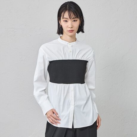 他にはないデザインと、一枚でこなれた印象を引き立てるブラウス。