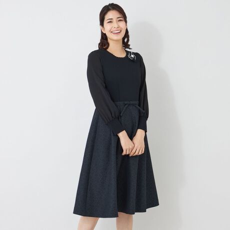 ふくれジャカード ニットコンビドレス