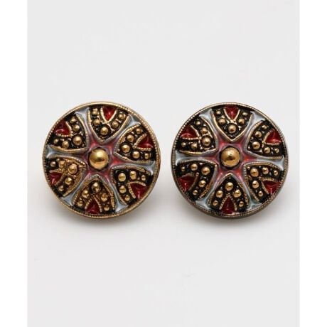 [型番:LAGZ6606-2026]チェコガラスのボタンが印象的なイヤリング。繊細なカットとゴールドメッキの輝きが上品なバランスで、クラシカルな装いにもぴったりの一点もの感あふれるデザイン。
