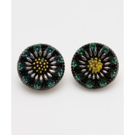 [型番:LAGZ6606-2026]チェコガラスのボタンが印象的なイヤリング。繊細なカットとゴールドメッキの輝きが上品なバランスで、クラシカルな装いにもぴったりの一点もの感あふれるデザイン。