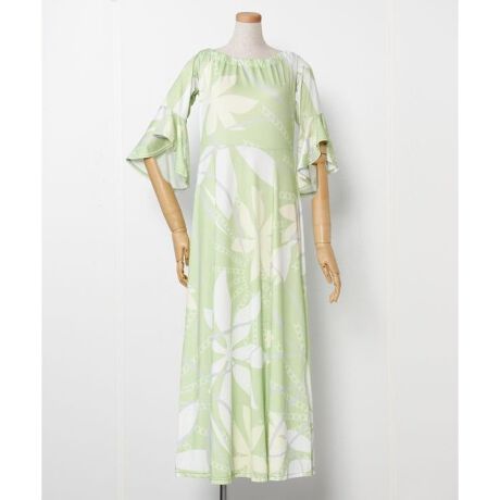 《Ocean Blue Bird-オーシャンブルーバード-》 オンショルダー、オフショルダーでご着用いただけます。優雅に揺れる袖のベルスリーブが印象的でトレンド感あるデザイン。バスト下の高めの切替えでスタイルアップ。膝上までの程よいスリットが女性らしいスタイル。足下からの着脱が可能です。メイクやヘアスタイルを崩しません。「ティアレトア」美しく咲く大輪のティアレが印象的なアートワーク。強く大胆なイメージに感じる清らかさと凛とした気品。シンプルなトライバルとのコンビネーションは伝統とモダンさの融合を表現したタヒチアンデザインです。