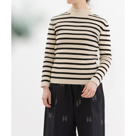オーガニックコットンで編み立てた総針のボーダーニット。肌触りのよいコットンで程よく厚みがあり、しめつけすぎないフィット感。秋口から春先までロングシーズン活躍します。